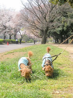 満開の桜をホメながら奥へ奥へとドッグランを目指して。
