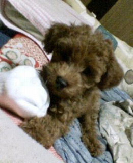 アタクシが頭の中に描いていたトイ・プードルは“プードル・カフェ”と言う雑誌に載っているタグイのプリプリ可愛い、目はパッチリでフワモコのイメージに対し彼は“痩せていて耳がヨジレテイル目の小さい”ヘンテコな犬だったからですわ。