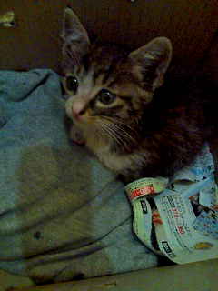 うちのお弟子のAIちゃんが仔猫 を確保〜\(__)生後一ヶ月、キジとら。たぶん【♂】尻尾はロング。明日、ドウプツ病院にてアタクシ、健康診断して参ります。イケメンですわ(*^^*)今、仮名で【石松】って呼んでますが、なかなかかわいいですからっ。
